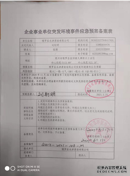 應急預案備案函 突發(fā)環(huán)境應急預案備案登記表 博羅縣環(huán)境保護局 2021-6-11