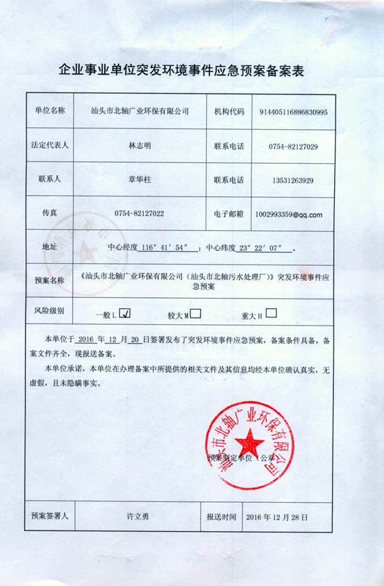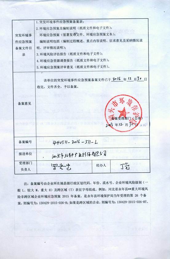 1、單位名稱: 汕頭市北軸廣業(yè)環(huán)保有限公司